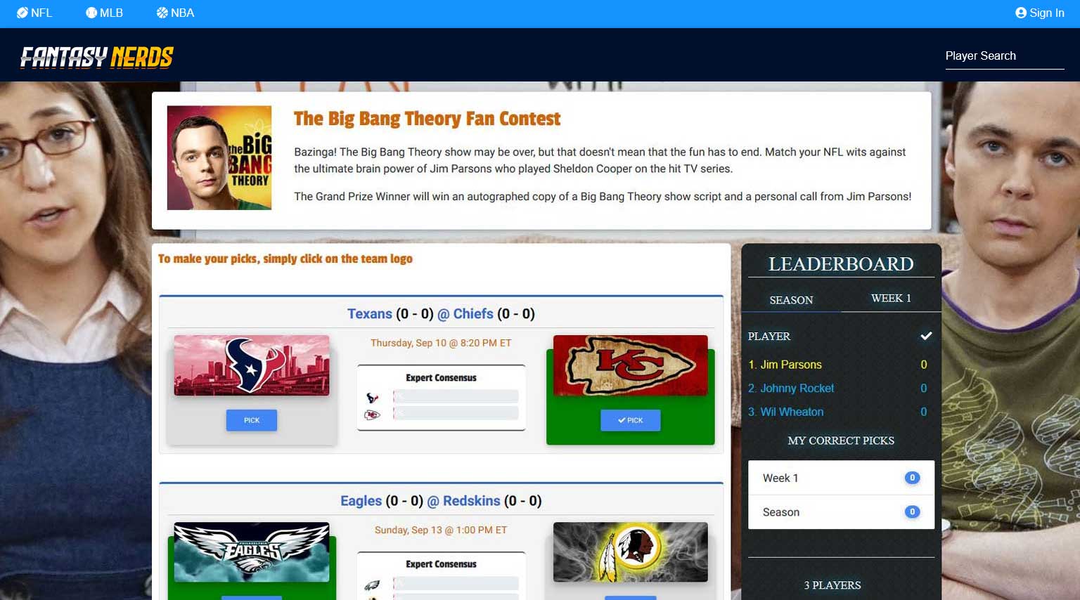 Are you an influencer, celebrity, or a company representative looking to engage with your followers, audience, or staff? Then you've come to the right place! Fantasy Football Nerd can host your NFL Pick'em contest. You can create your own private Pick'em Contest, but if you want to take your contest to the next level, we can custom tailor the experience for your audience!